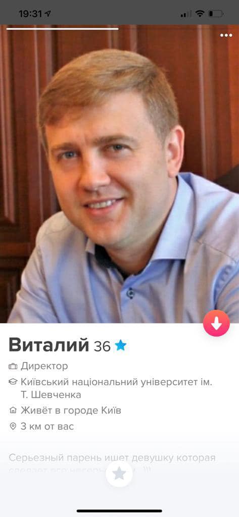 У популярному додатку для знайомств Tinder хтось створив фейковий акаунт, використовуючи фото голови Рівненської облдержадмінстрації Віталій Коваля.