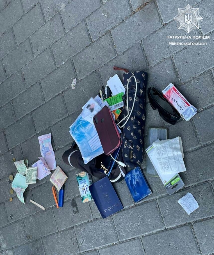 Невідомий вирвав з рук сумку з особистими речами, коштами та квитками та побіг в біг вулиці Небесної Сотні. 73-річна мешканка Житомирщини надала детальний опис чоловіка. Патрульні ретельно обстежили будинки на вказаній вулиці й виявили особу, схожу на кривдника жінки. У нього виявили речі — документи, квиток на потяг, кошти та особисті речі заявниці.