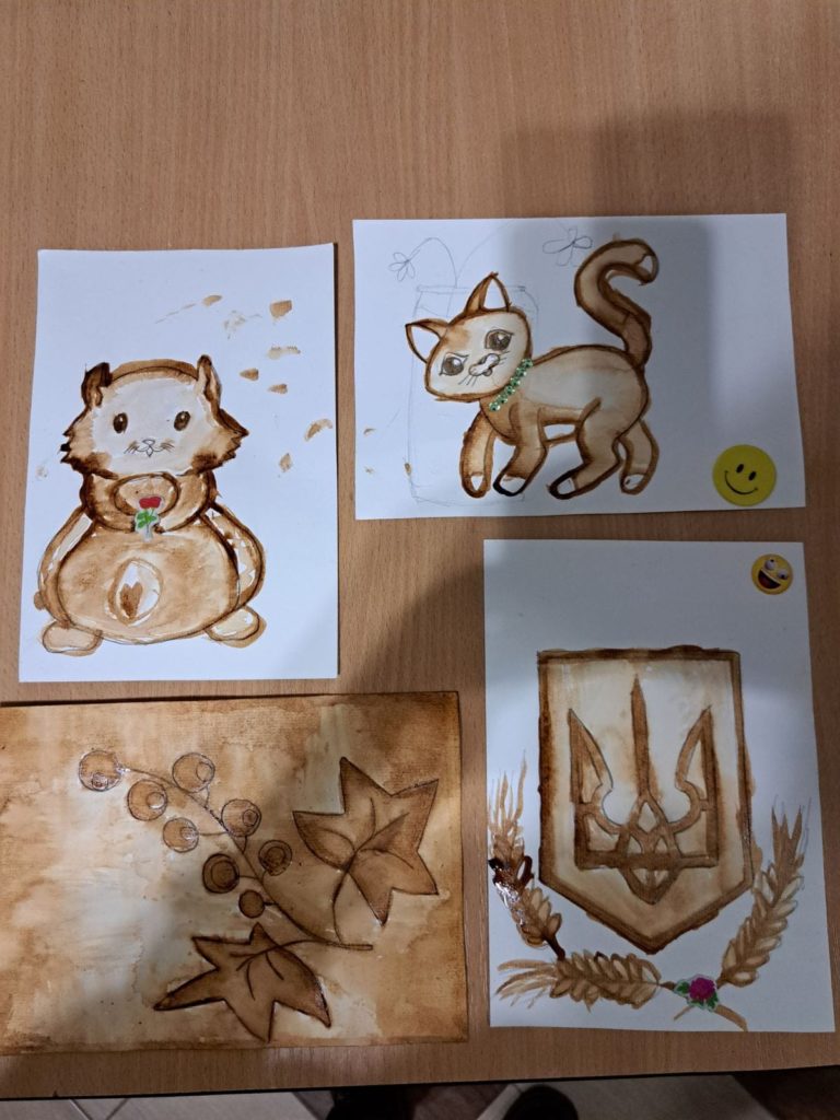 Орієнтуючись на вподобання дітей до малювання кавою, продовжуємо наші творчі заняття з нетрадиційної техніки “Coffee-art”, розповідає Ніна Чепурна.