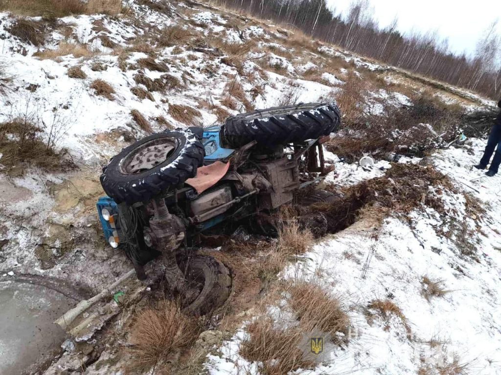Вирішив прямувати додому через ліс, але не впорався із керуванням, вскочив у яму та перекинувся. Кермувальник не травмувався та пішов далі пішки, а техніку там і лишив.