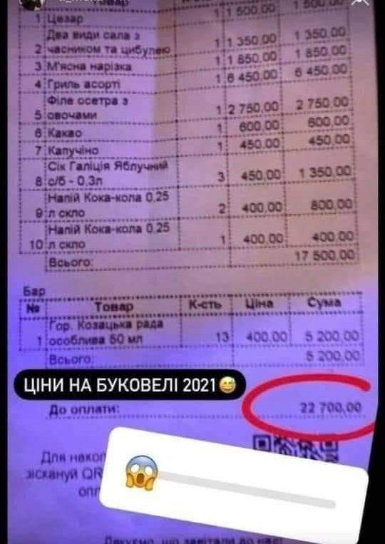 Немає українця, який не чув про цей курорт. Але чи кожен зможе собі дозволити поїхати зимою в Буковель. Задоволення не з дешевих. В мережі з’являються фото, на яких вражені туристи виставляють чеки із закладів харчування. Ціни не просто вражають, а вводять в ступор.
