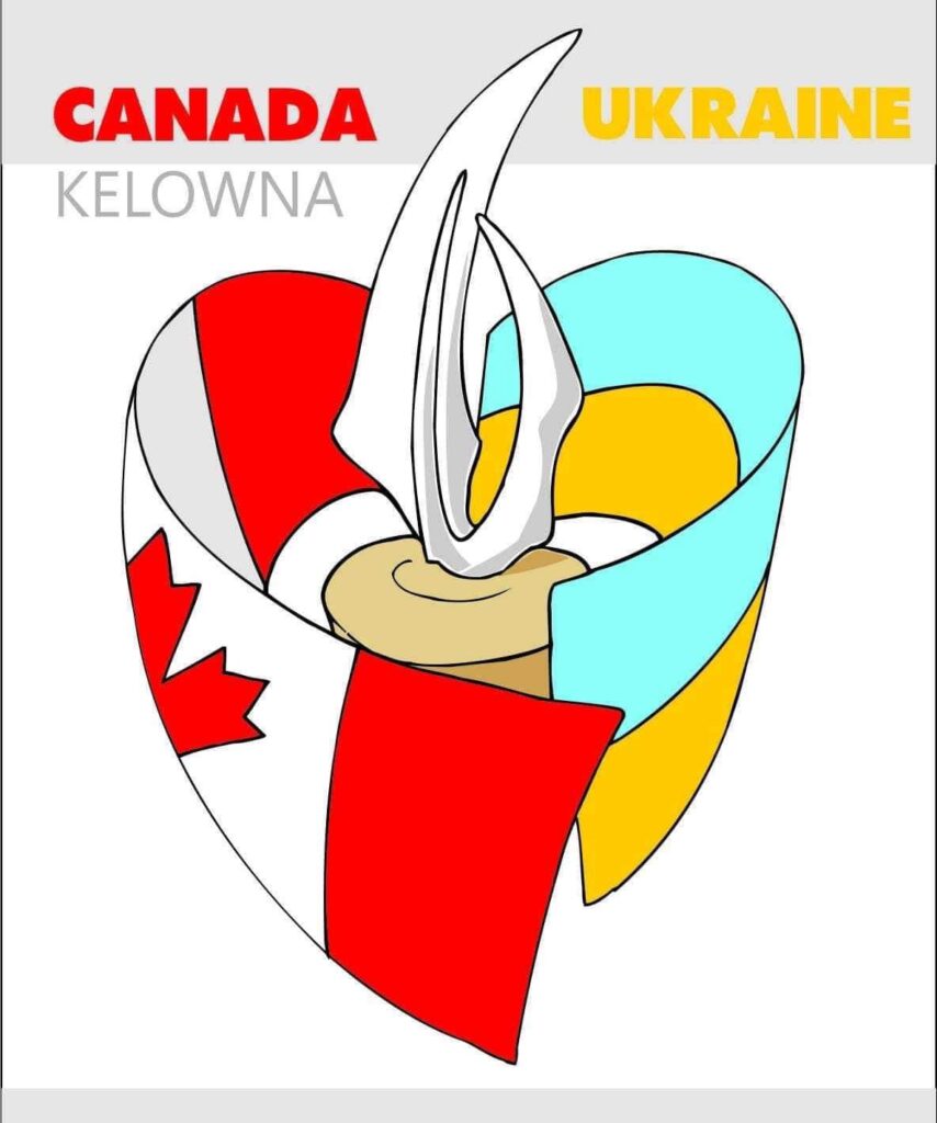 Олексій Огонь створив спочатку листівку, на якій зображено прапори України та Канади. Тепер малюнок перенесли на футболки. Так реалізувався задум подякувати друзям з Келоуни.