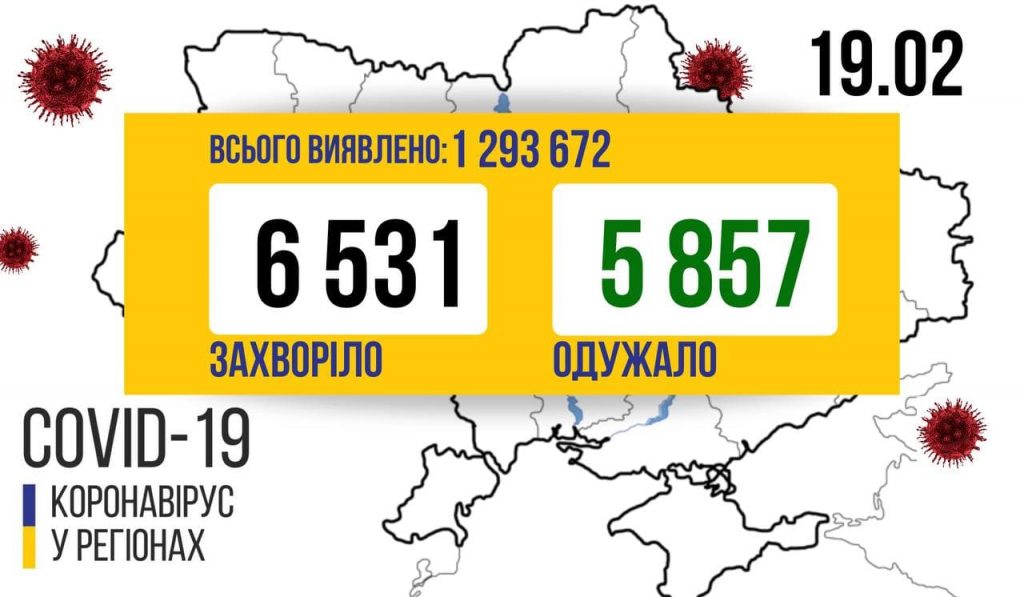 6 531 новий випадок коронавірусної хвороби COVID-19 зафіксовано в Україні станом на 19 лютого 2021 року. Зокрема, захворіли 418 дітей та 285 медпрацівників.