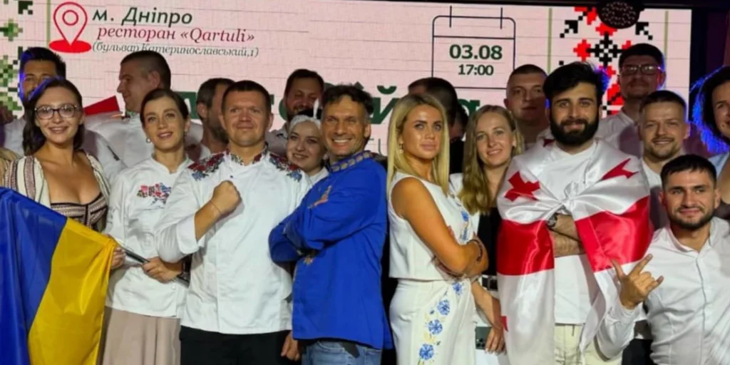 Київ, Рівне, Дніпро, Житомир, Одеса, Івано-Франківськ, Харків, Львів, а також Грузія та Азербайджан – величезна команда волонтерів, яку зібрав цього разу у Дніпрі головний шеф-кухар країни Андрій Магалецький. Попри втому, недоспані ночі та довгу дорогу, організатори досягли своєї цілі – зібрали 5 000 000 гривень для наших захисників!
