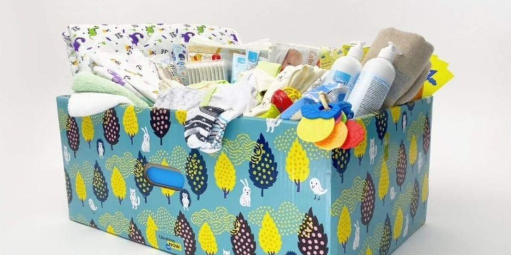 У ньому міститься комплект із понад 90 предметів і виробів, які знадобляться для догляду за немовлям у перші місяці його життя (підгузки, пеленки, ковдри, засоби гігієни, іграшки та інше). Усі речі обов’язково перевірені та сертифіковані. Загальна вартість такого пакунка – 6 778 грн.