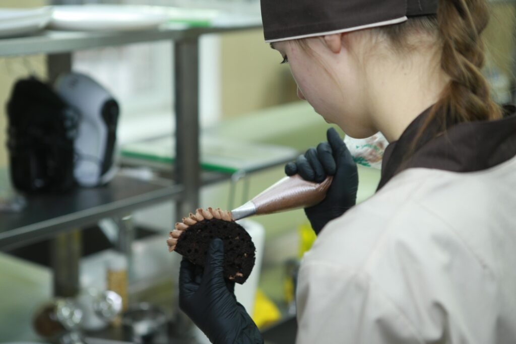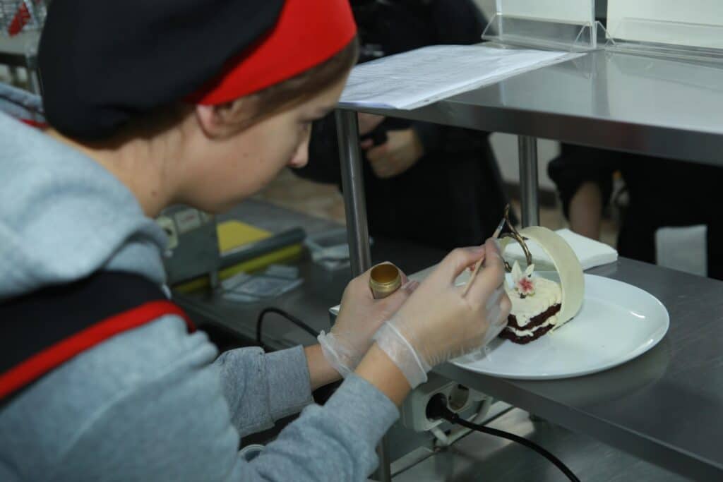 Кульмінацією став головний практичний батл — приготування сучасних тістечок із використанням актуальних технік: трендових бісквітних текстур, різноманітних крем-чізів, фруктового конфі та збалансованих смакових поєднань. Учасники мали продемонструвати точність, грамотний тайм-менеджмент, чистоту робочого місця і вміння створити ідеальну презентацію десерту.