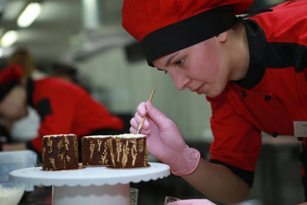 Кульмінацією став головний практичний батл — приготування сучасних тістечок із використанням актуальних технік: трендових бісквітних текстур, різноманітних крем-чізів, фруктового конфі та збалансованих смакових поєднань. Учасники мали продемонструвати точність, грамотний тайм-менеджмент, чистоту робочого місця і вміння створити ідеальну презентацію десерту.