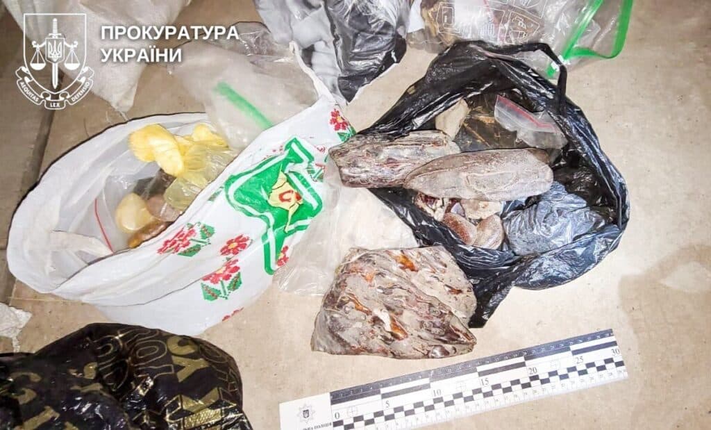 Згодом, під час санкціонованого обшуку в гаражі підозрюваного, правоохоронці вилучили ще близько 60 кілограмів «сонячного» каміння. У жодному з випадків чоловік не надав документів, які б підтверджували законність походження бурштину.