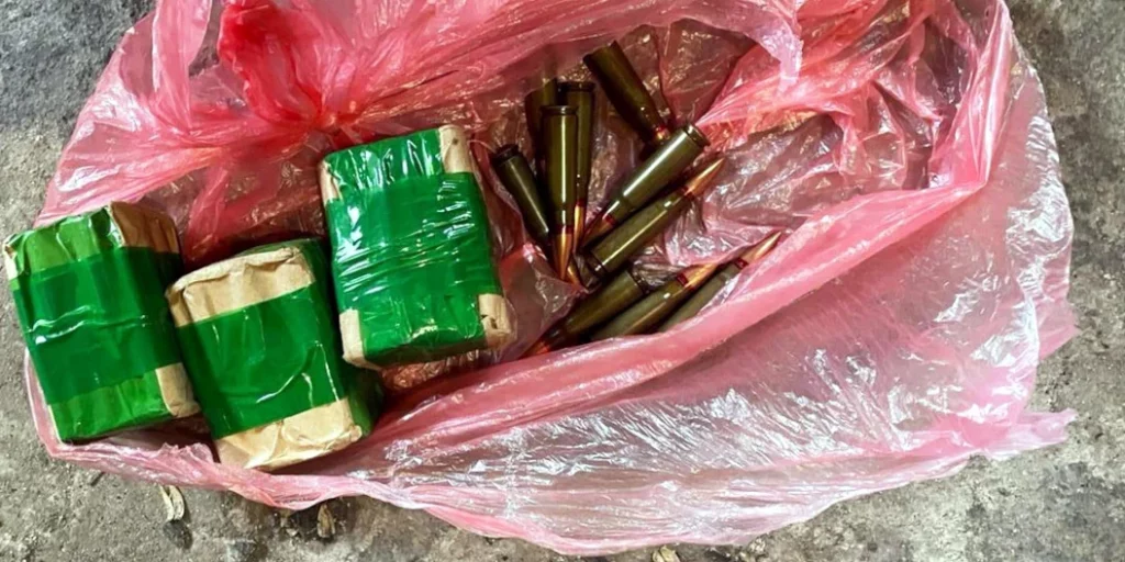 Так, під час слідчих дій у кімнаті будинку працівники поліції виявили та вилучили бурштин-сирець, а у підсобному приміщенні — «сонячне» каміння та 106 патронів різного калібру.