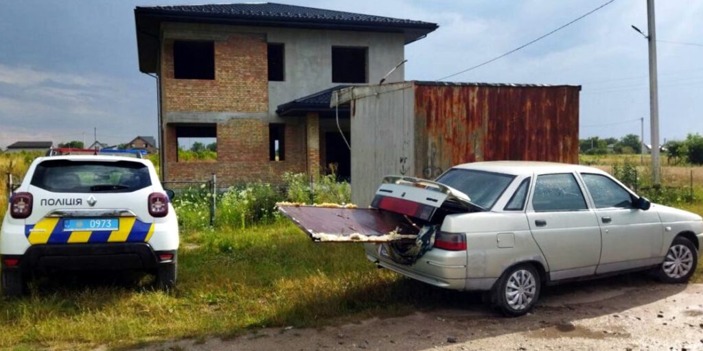 Як повідомили в Поліції Рівненщини, орієнтовно через 20 хвилин на вулиці Мельника в райцентрі начальник відділу взаємодії з громадами Дубенсьго РВП, спільно із поліцейським офіцером Тараканівської тергромади виявили автомобіль «ВАЗ 2110», із багажника якого стирчала частина дверей.