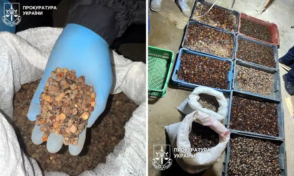 Під час санкціонованих обшуків у фігурантів вилучено 450 кг бурштину, який, за висновками експертизи, коштує понад 1,3 млн грн. На виявлений камінь накладено арешт.