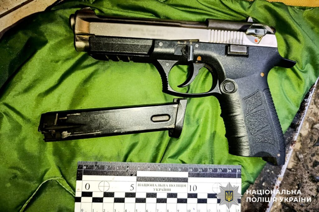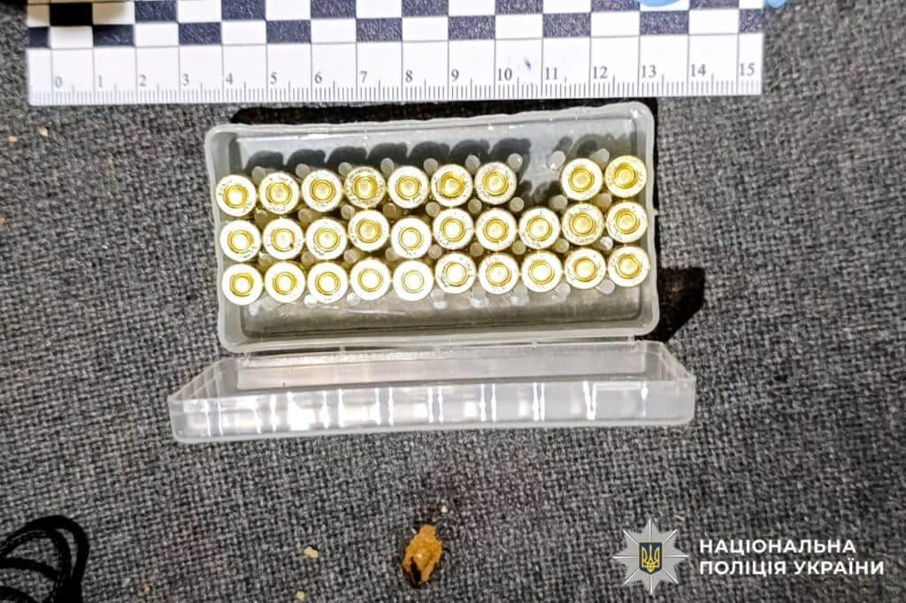 Під час обшуку поліцейські вилучили пістолет, автоматичну зброю, три пневматичні гвинтівки, штик-ніж, 29 холостих патронів, сім гільз, а також предмети із нашаруванням психотропної речовини.