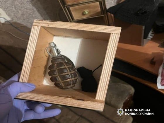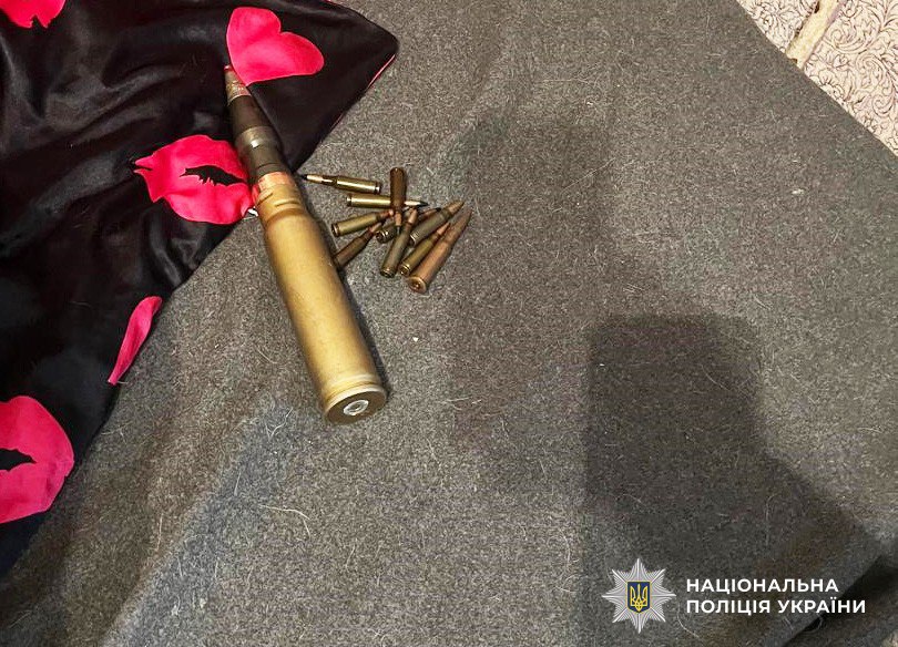 Під час обшуку поліцейські вилучили наркотики, гранату з запалом, артилерійський снаряд та 11 патронів калібру 5,45 мм. Йому повідомили про підозру за трьома статтями КК України: збут і зберігання психотропних речовин та незаконне зберігання боєприпасів.