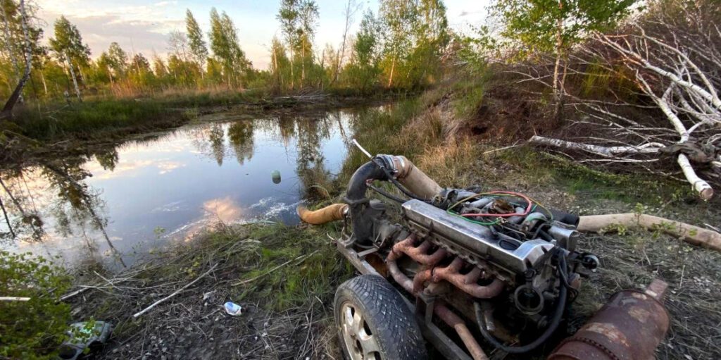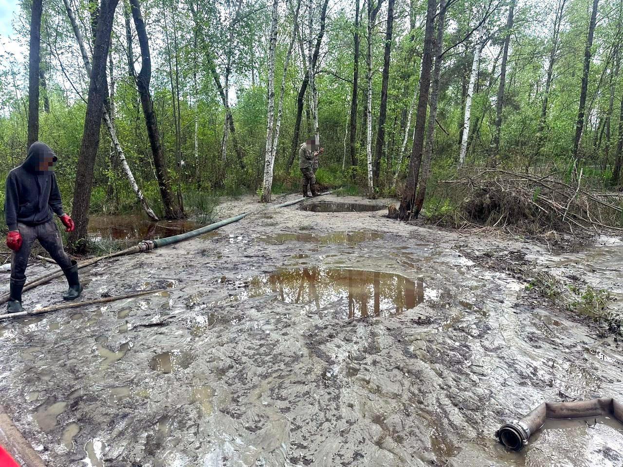 Також поблизу села Єльне в урочищі «Гнойне» правоохоронці виявили та вилучили дві мотопомпи, пожежні рукави та каміння бурштину.