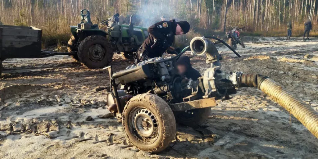 З місця події правоохоронці вилучили мотопомпу кустарного виробництва, трактор із причепом, близько кілограму каміння бурштину-сирцю, каністри з пальним та знаряддя для незаконного промислу.