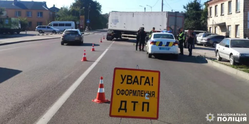 Поліцейські встановили, що 53-річний водій вантажного сідлового тягача «MAN» з напівпричепом, виїжджаючи з прилеглої території підприємства та виконуючи маневр повороту праворуч, допустив наїзд на пішохода, 57-річного місцевого жителя, який в той час розпочав переходити місце заїзду до прилеглої території попереду вантажівки та вів велосипед у руках.