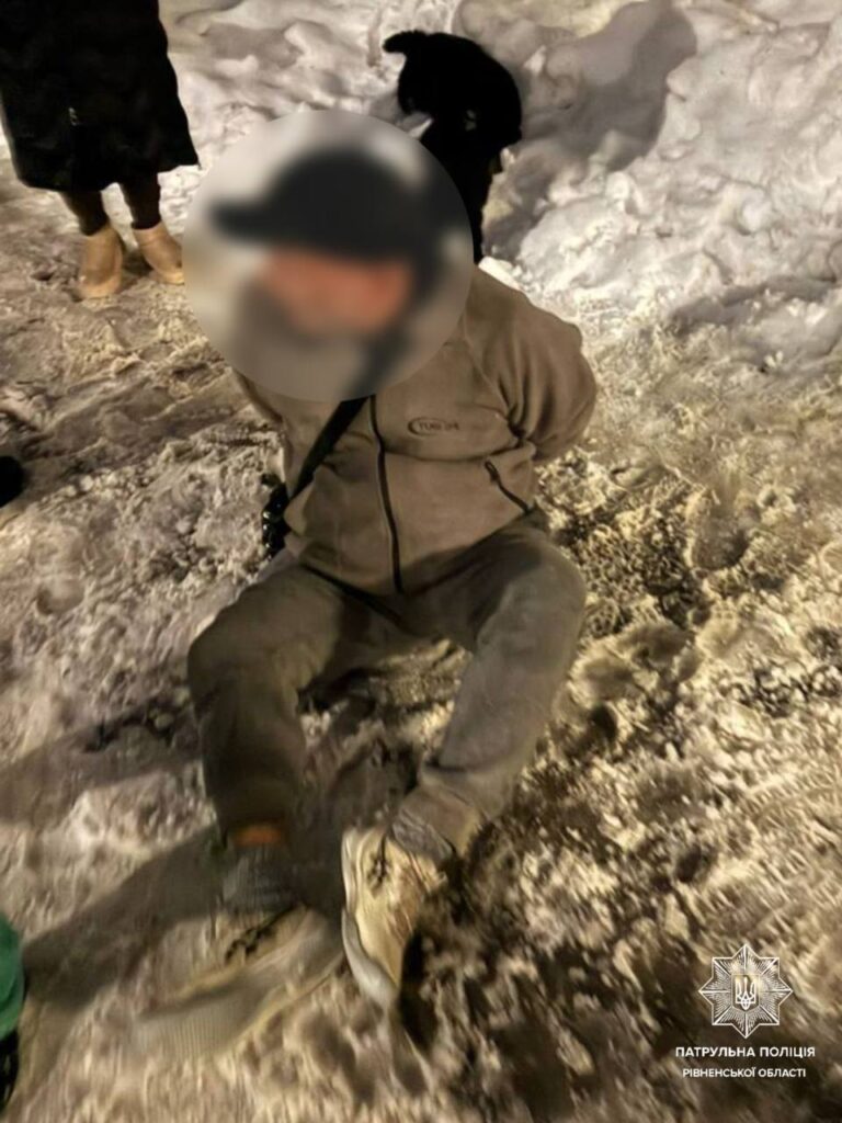 Нападника вдалося розшукати менш ніж за годину. Патрульні поблизу залізничного вокзалу зупинили групу осіб, серед яких оперативники Рівненського районного управління поліції впізнали ймовірного зловмисника. Слідчі затримали 50-річного чоловіка та повідомили йому про підозру за ч. 1 ст. 115 (Замах на вбивство) ККУ.