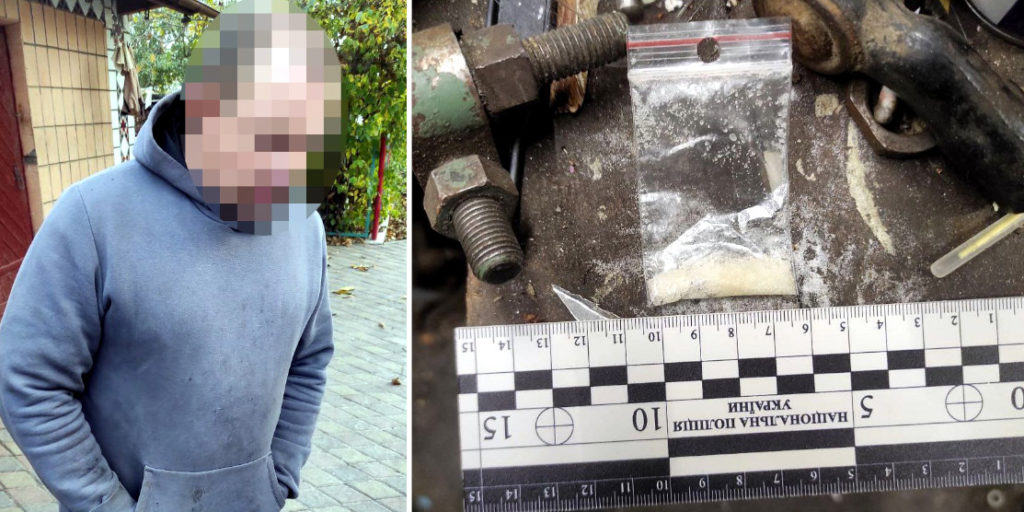 Під час санкціонованого обшуку за місцем його проживання поліцейські виявили та вилучили кристалічну речовину, схожу на наркотичну, пристрої для вживання наркотиків, 10 тисяч гривень, зокрема мічені купюри, отримані під час закупки та інші речові докази.