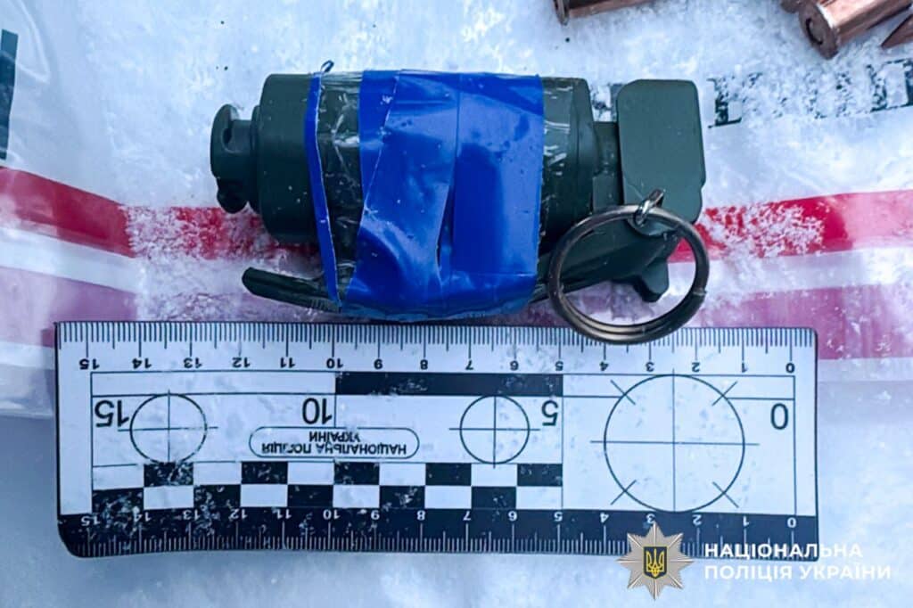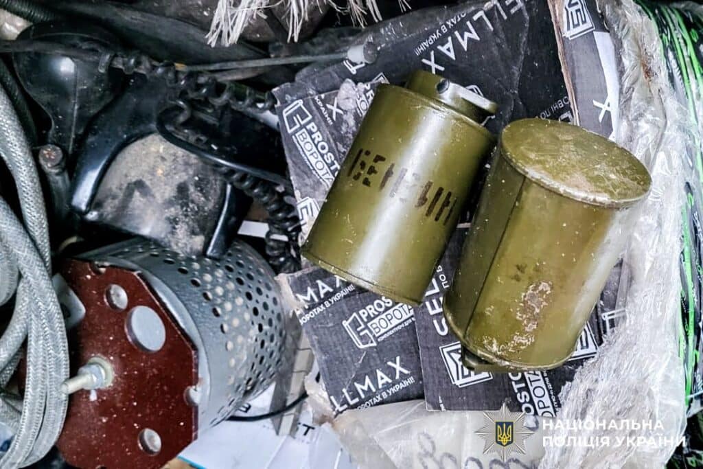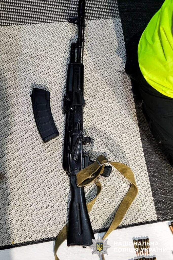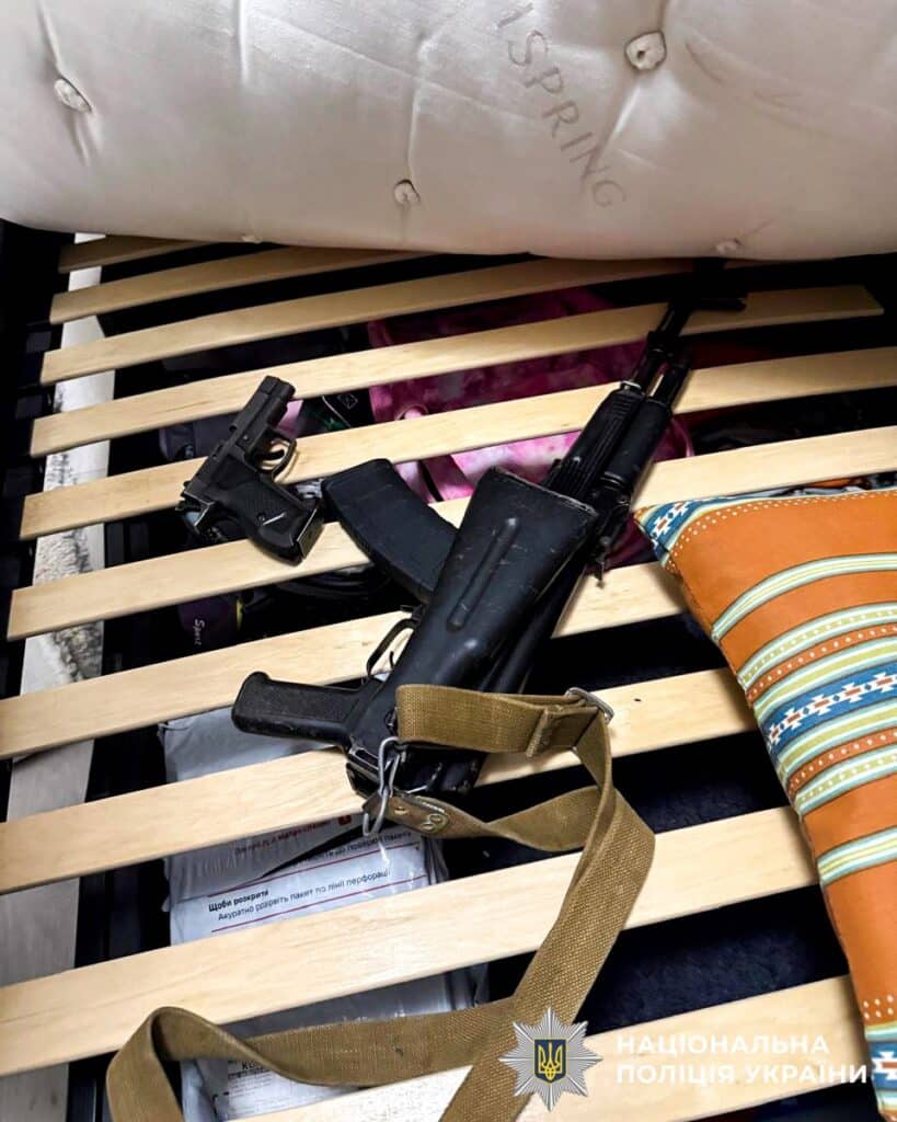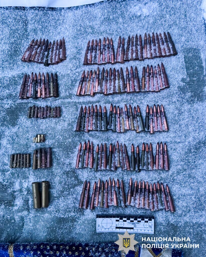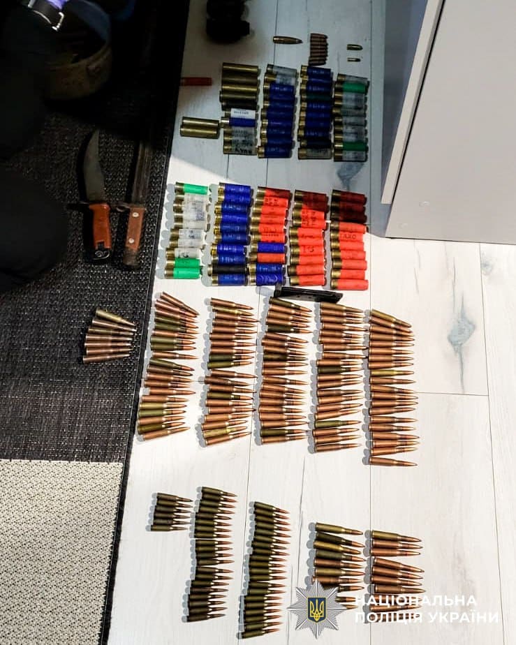 Під час обшуку правоохоронці виявили та вилучили автомат Калашникова, три гранати, пристрій для відстрілу гумових куль «Форт-12» із двома магазинами, 293 патрони різних калібрів, два штик-ножі, а також ручну гранату «ДМ-51» із запалом.