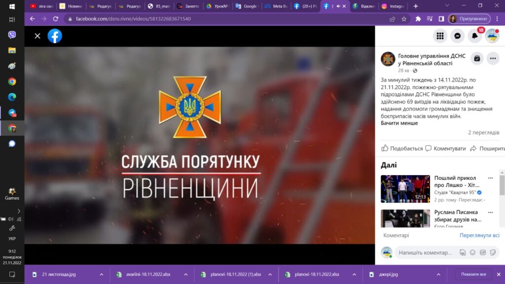 19 квітня о 21:34 у селі Немовичі, вул. Хміля, Немовицької ТГ, Сарненського району. В приватному господарстві вогнем пошкоджено покриття житлового будинку на площі 2 м.кв. Причина та збитки встановлюються. О 9 годині м. Вараш чергування під час обстеження після повідомлення про замінування навчальних закладів (Виклик не підтвердився), повідомили у ДСНС Рівненської області.