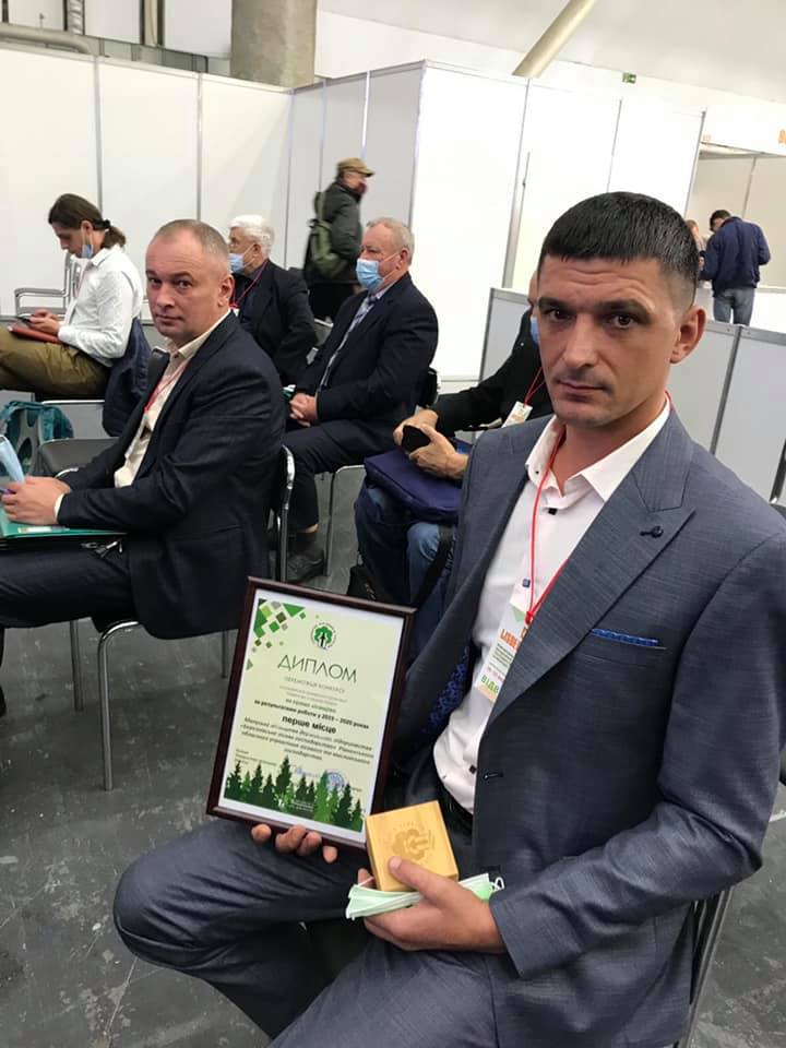 Диплом переможця вручили сьогодні лісничому Миколі Гапону на розширеному засіданні Всеукраїнської ради Товариства лісівників України.
