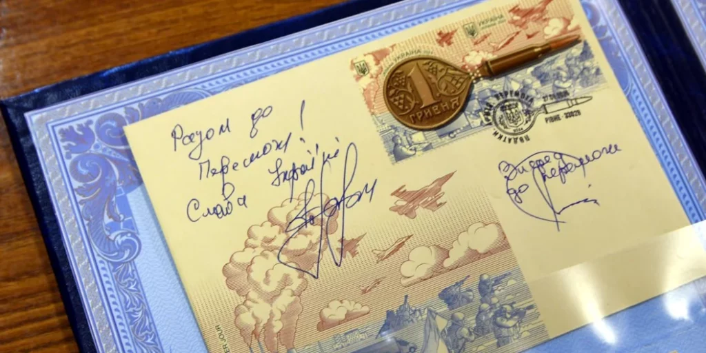 “Ця марка – нагадування про те, що усі, хто сумлінно сплачує податки – працює на обороноздатність держави. Саме завдяки кожному з вас, хто сплачує податки, ми облаштовуємо фортифікації, будуємо новий корпус у госпіталі, фінансуємо оборонні розробки місцевих винахідників й надаємо пряму фінансову допомогу військовим”, – сказав начальник Рівненської ОВА Олександр Коваль.