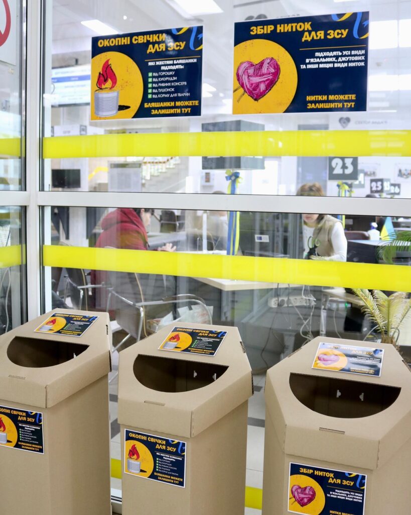 Віднедавна у приміщенні ЦНАПу в Рівному стоять контейнери для збору складових матеріалів для виготовлення окопних свічок.