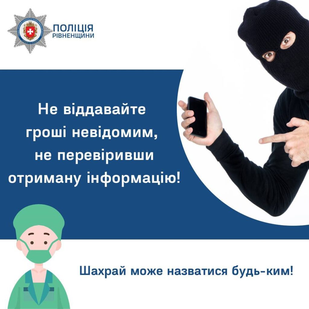 За однією і тією ж схемою від злочинних діянь аферистів продовжують потерпати мешканці Рівненської області. Поліцейські вкотре застерігають не віддавати гроші невідомим особам, не перевіривши отриману інформацію.