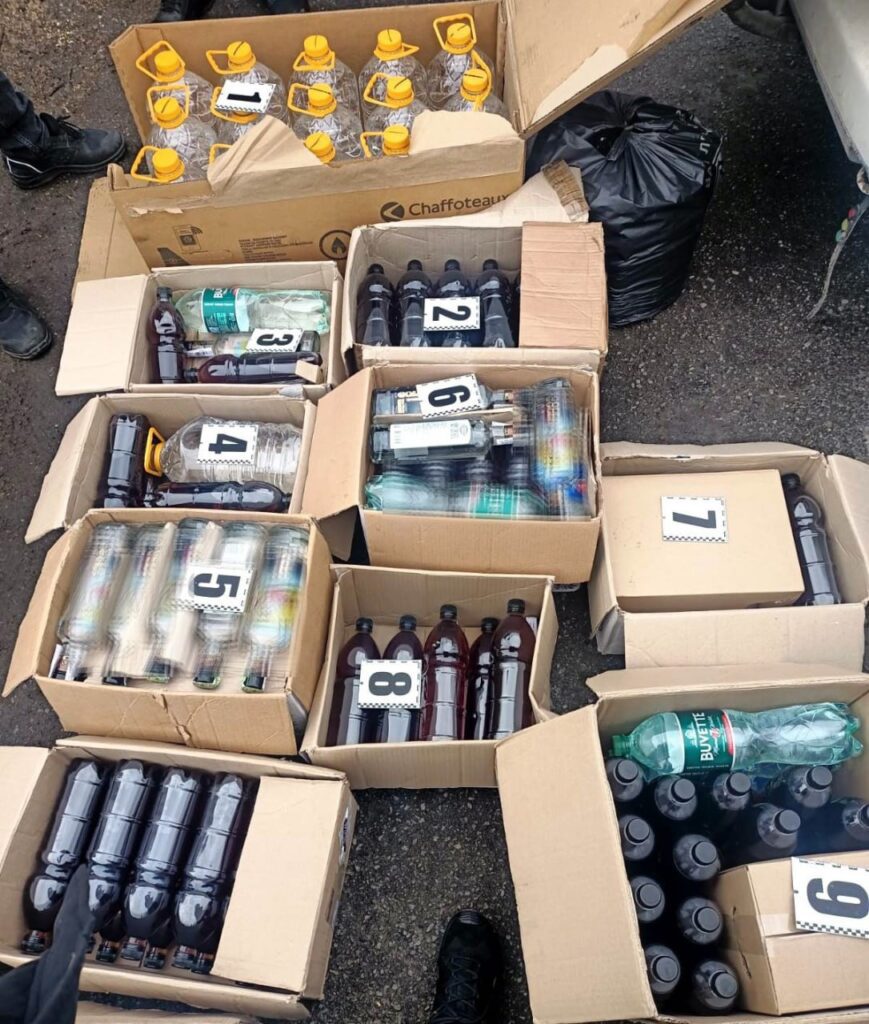 На місце події прибула слідчо-оперативна група, яка задокументувала кримінальне правопорушення. Фургон та алкоголь у різних скляних та пластикових ємностях загальним об’ємом близько 400 літрів вилучили.