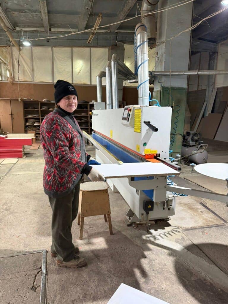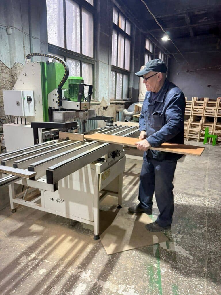 На меблевій фабриці Українського товариства глухих (НВП УТОГ) нині працюють 34 людини. Понад половина з них — з порушенням слуху. Вони виготовляють каркасні та корпусні меблі для шкіл, дитсадків, медичних закладів і навіть для ЗСУ. Частину замовлень виконують індивідуально. У виробництві використовують лише сертифіковані матеріали, що відповідають санітарно-гігієнічним нормам і ДСТУ.