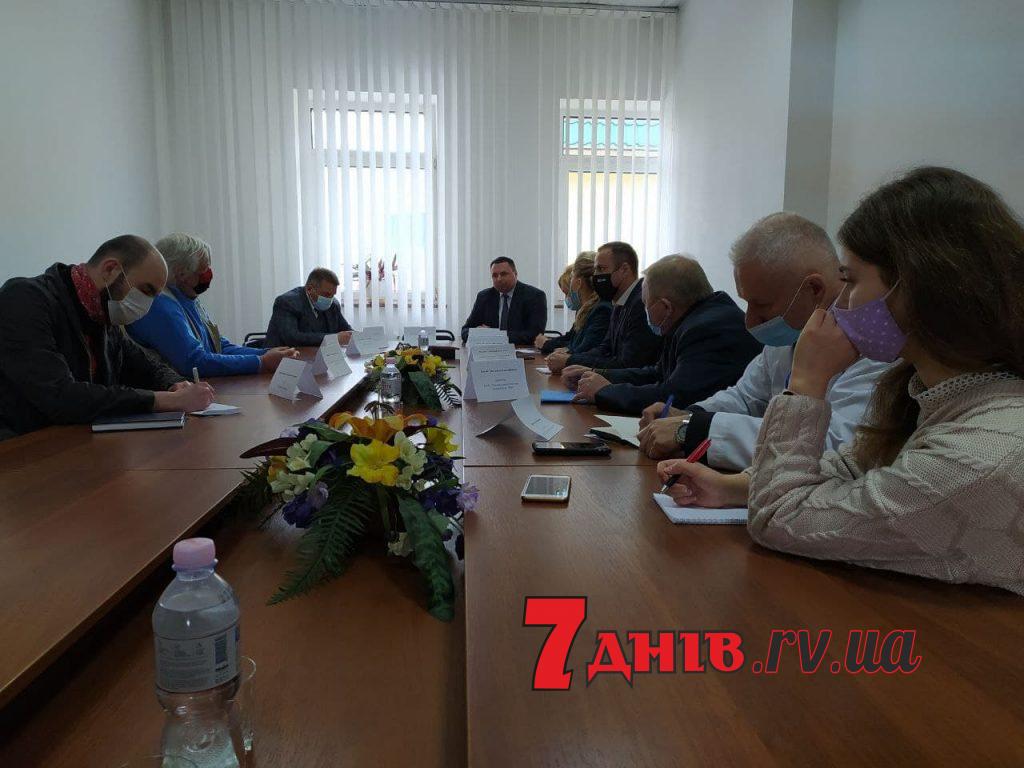 Це учасники круглого столу, за яким обговорюється питання комунікації медперсоналу з пацієнтами. У заході беруть участь міський голова Рівного Олександр Третяк, його заступник Юрій Поліщук, начальник міського управління охорони здоров’я Віктор Іськів, керівники медичних закладів і представники громадських організацій.