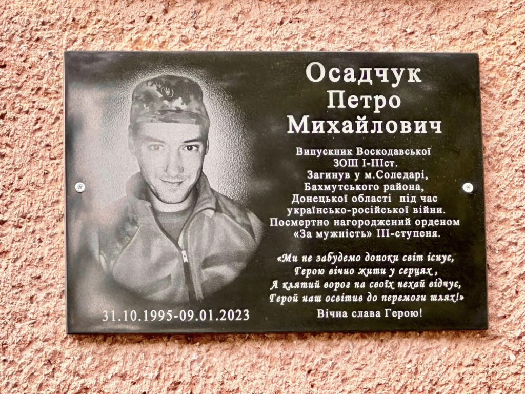 На Рівненщині у селі Воскодави відкрили меморіальну дошку прикордоннику Петру Осадчуку