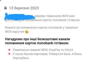 Нещодавно Монобанк припинив співпрацю з термінала поповнення готівкою своїх рахунків. Їх можна було поповнити в інших терміналах, але з урахуванням комісії.