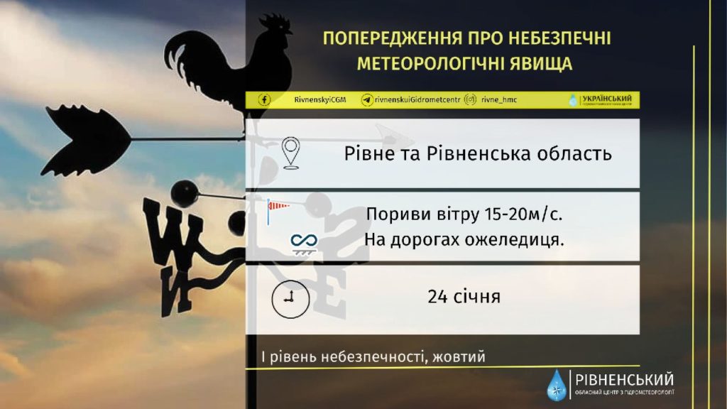 Попередження про небезпечні метеорологічні явища по Рівненщині.