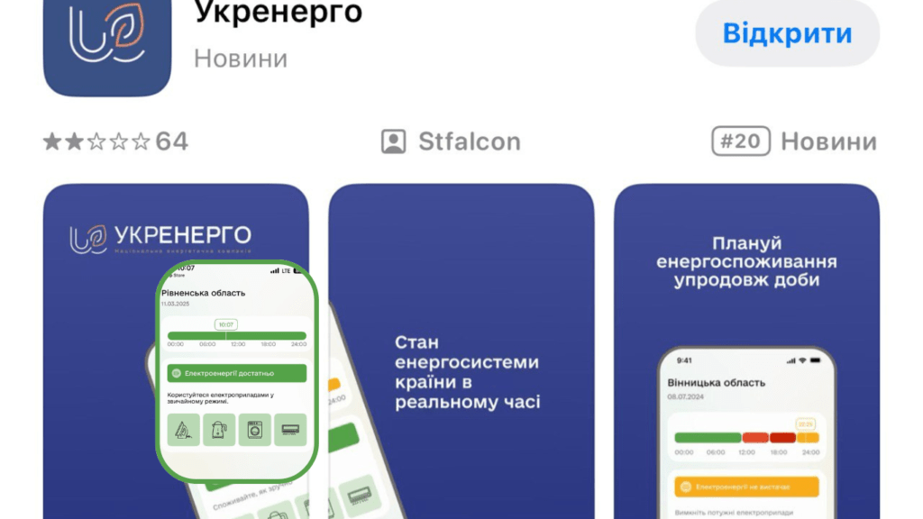 Мобільний застосунок «Укренерго» вже доступний у Play Market та App Store. Завантажуйте на Android і iOS.