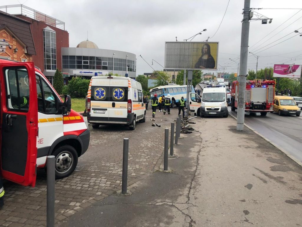 У результаті цього тролейбус зіштовхнувся з автомобілем «Volkswagen Caddy» під керуванням 45-річного рівнянина та в подальшому виїхав на тротуар збив металеві стовпчики та бетонне огородження дороги.