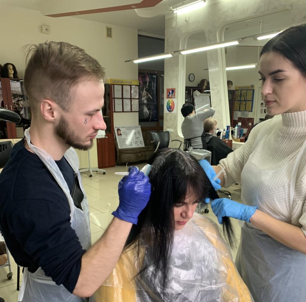 Аліна Дордюк навчатися на перукаря прагнула ще декілька років тому. Обставини склалися так, що наважилась на це вже під час війни. «Відбулися нова оцінка життя, зміна пріоритетів і цінностей. Я прагнула нового, отож, почала пошуки закладів освіти. А у службі зайнятості мені запропонували навчання в Центрі. І я відразу погодилася. Ми вже розглянули різні техніки виконання перукарських робіт, і я обиратиму свій напрям роботи». Практика слухачки проходить у луцькому салоні. «Тепер я розумію, чого прагну, і це мені дійсно подобається».