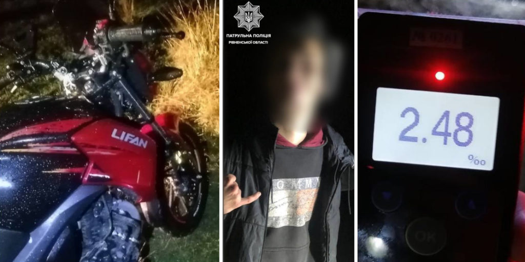 Учора увечері, близько 22-ої години, на автодорозі М-07 Чудель-Тинне патрульні помітили мотоцикліста, який повільно їхав та виляв, а коли водій з’їхав на ґрунтову дорогу, то мотоцикл Lifan почало заносити на мокрій траві.