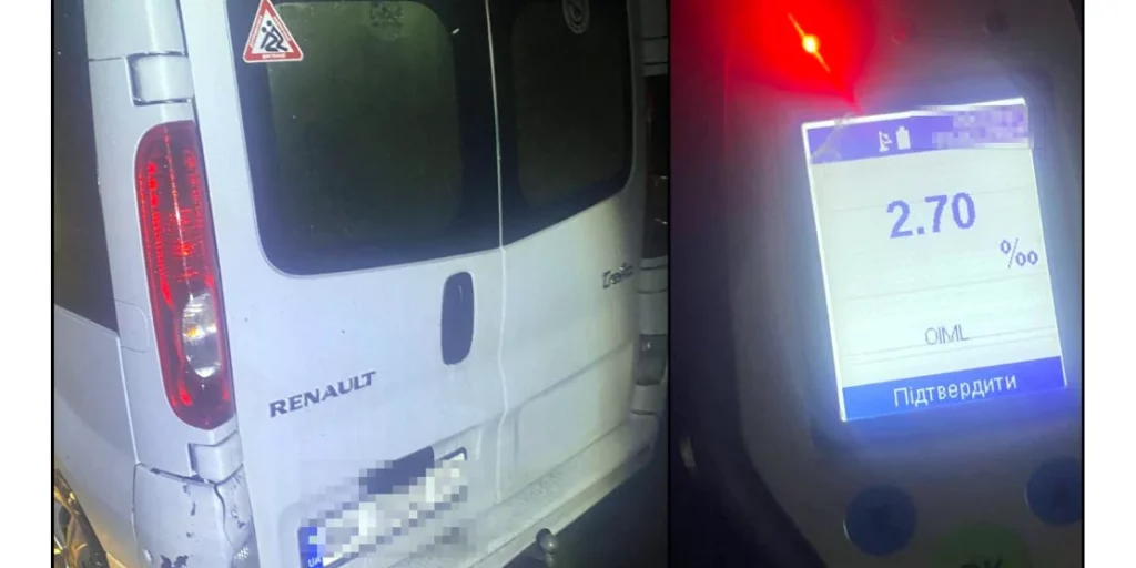 Поліцейські помітили у 21-річного водія ознаки алкогольного сп’яніння. Результат 2,70 проміле інспектори отримали лише після того, як учетверте провели огляд.