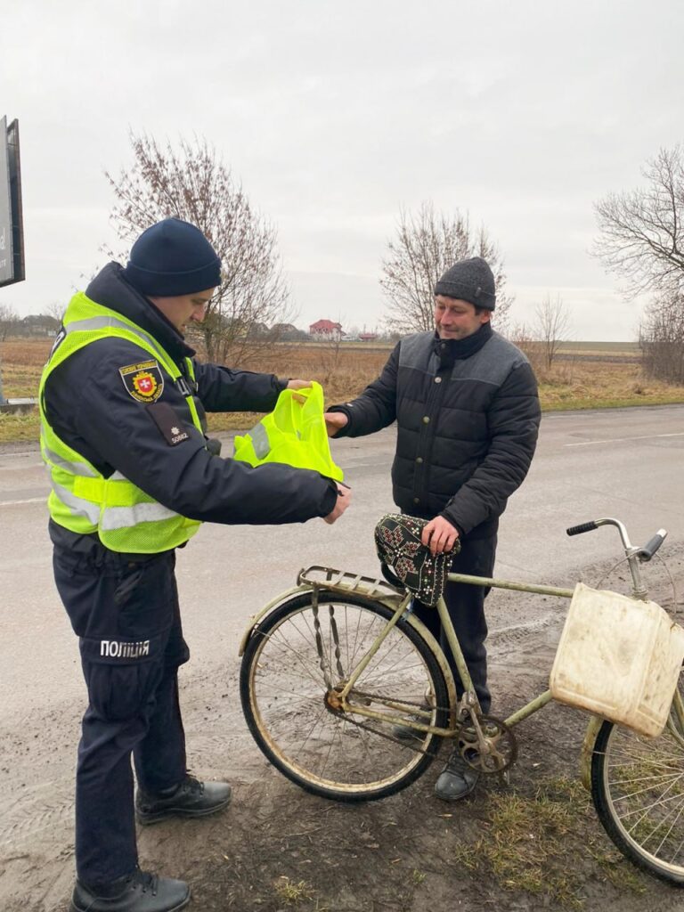 У автівці кожного екіпажу є декілька жилеток, які вони дарують перехожим у темному одязі чи без флікерів, наголошуючи на їх обов’язковому використанні.