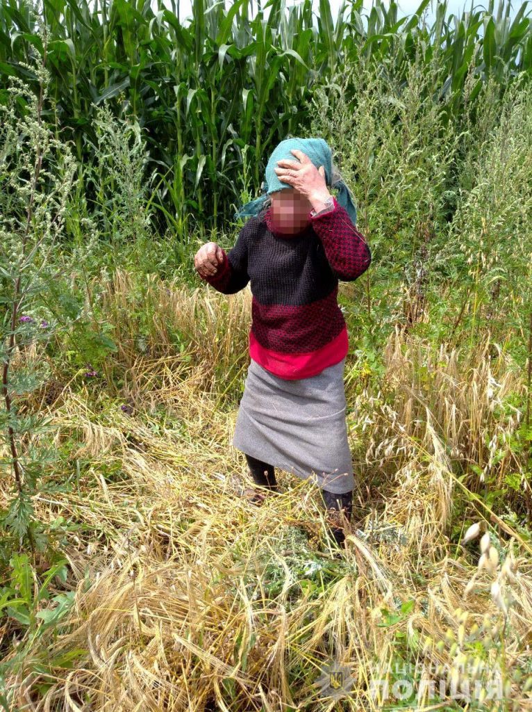 Жінка спокійно рвала бур’ян, ні про що не підозрюючи. Їй дали води та їжі, доставили додому. Наразі її життю нічого не загрожує.