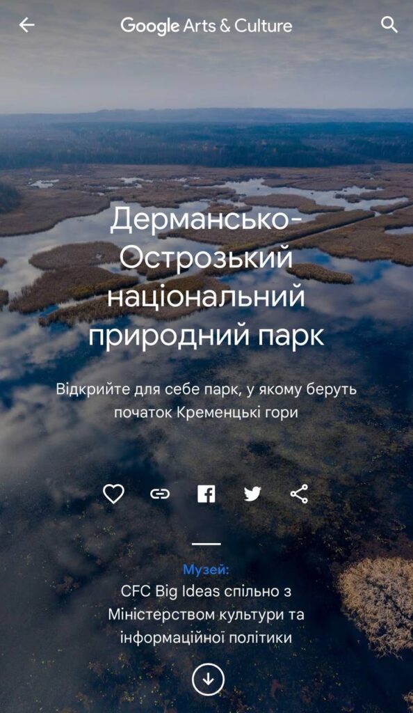 У всесвітній корпорації на платформі Google Arts&Culture з’явився спеціальний розділ про Україну. На власній сторінці українська культура репрезентована чотирма розділами: