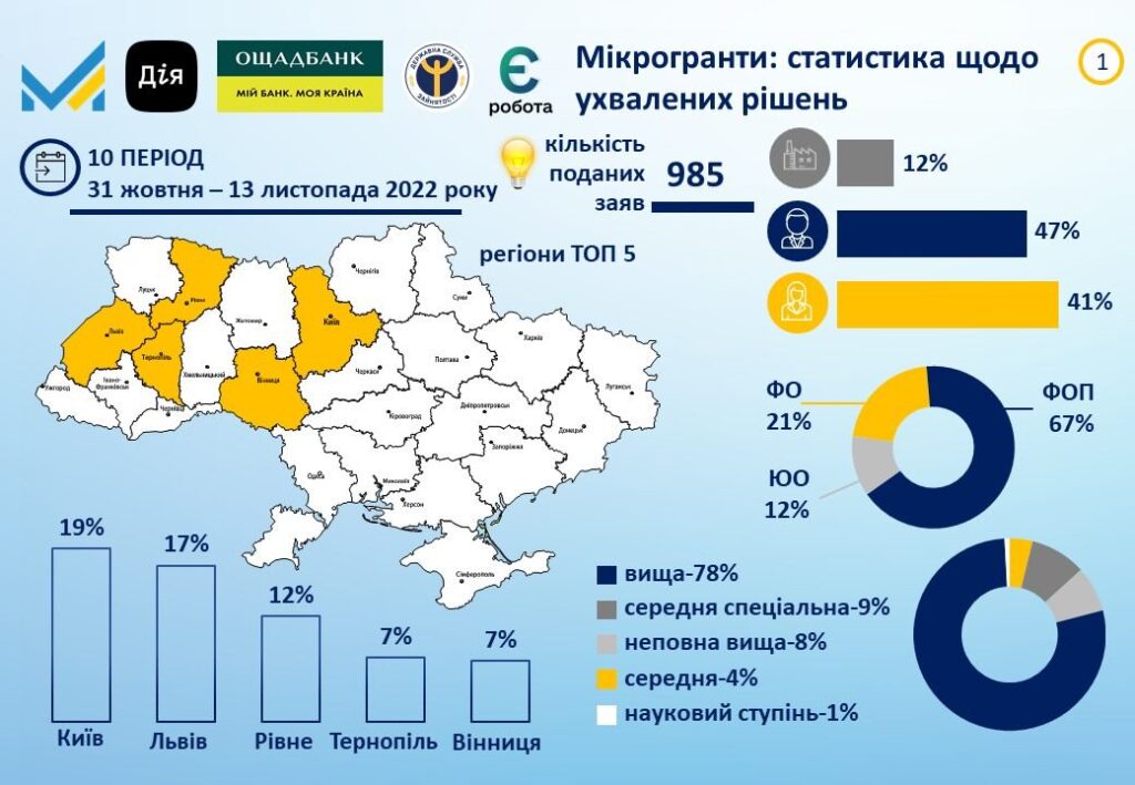 Через портал «Дія» подали заявки 542 підприємця, з яких 226 вже мають позитивні рішення щодо отримання грантів на суму 53,3 млн грн.