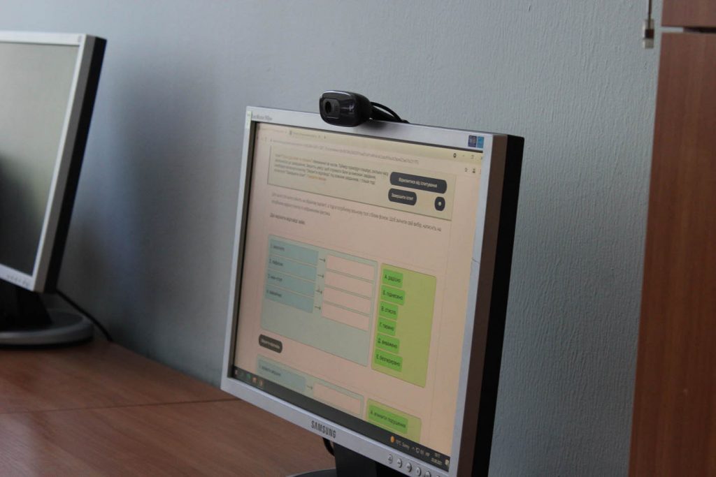 Він оснащений стаціонарними комп’ютерами, звуковою гарнітурою та камерами веб-зв’язку. Стежать за технічним процесом 2 адміністратори центру. А тестують учасників в режимі онлайн екзаменатори із Національної комісії зі стандартів державної мови, що у Києві.