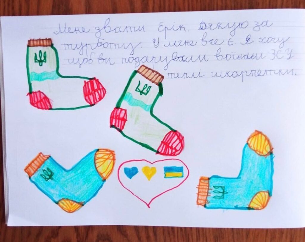 - А один хлопчик, який залишився сиротою і якого зараз доглядають бабуся з дідусем, написав, що в нього все є, а ось військовим потрібні теплі шкарпетки.