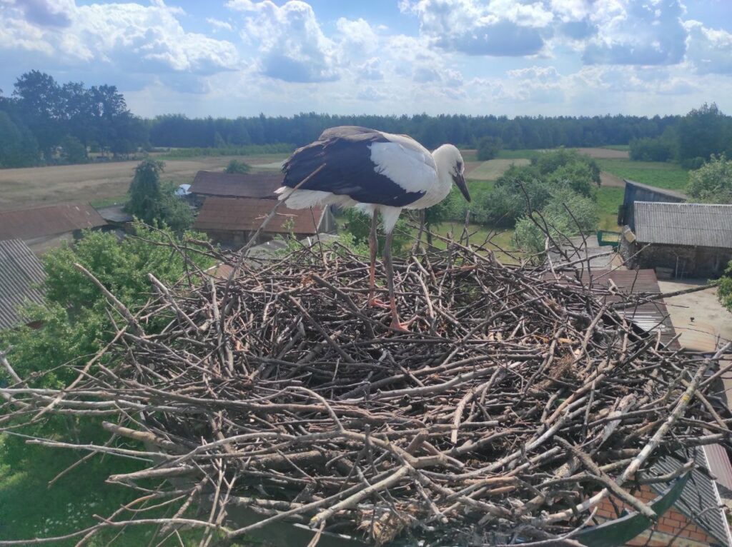 Буревій у ніч проти середи, 13 липня, у селі Вільне на Дубровиччині зруйнував гніздо лелек, яке впало з електроопори на дорогу. Звідти випало лелеченя, яким почали опікуватися місцеві жителі.