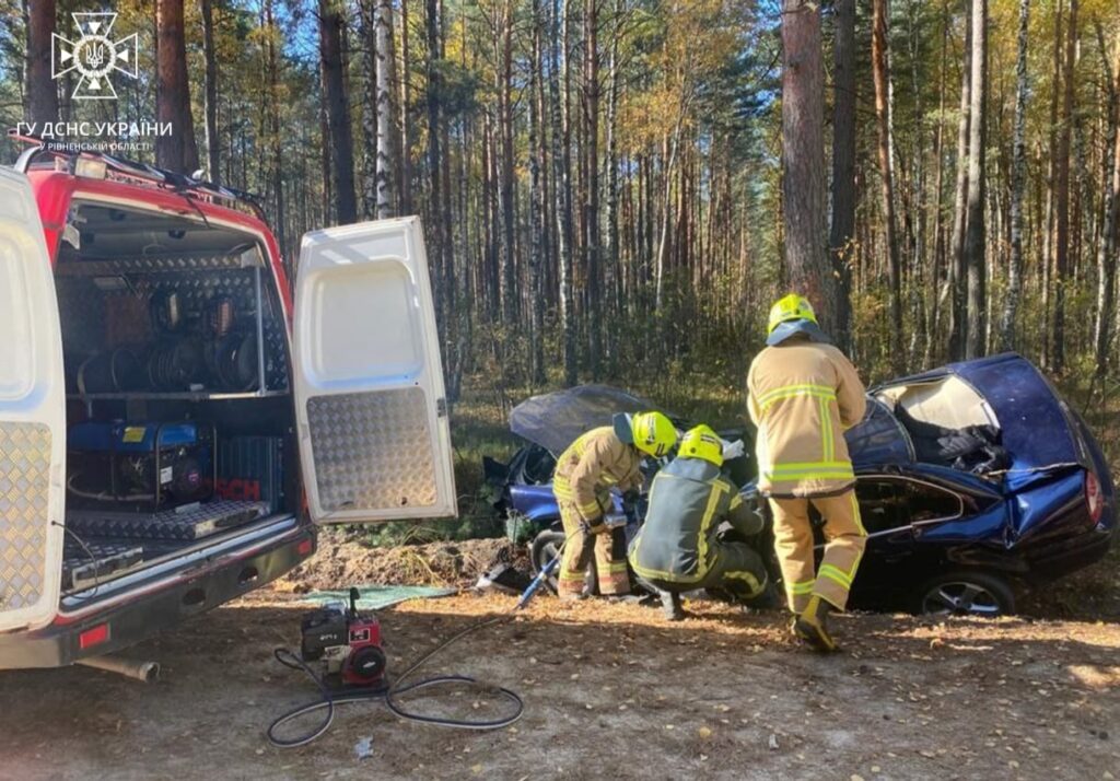 16 жовтня об 11:30 до рятувальників надійшло повідомлення від поліції про ДТП за участю автомобіля поблизу села Яцьковичі Березнівської ТГ Рівненського району. В автомобілі затиснуто людину.