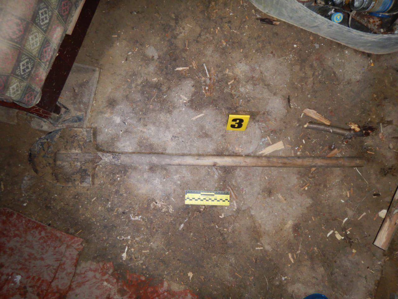 Під час ретельного огляду слідчо-оперативна група на території біля будинку 41-річного місцевого жителя виявила розрихлений ґрунт та бадилля, а під ним — у ямі, заготовленій для септика — тіло 46-річного чоловіка із ушкодженнями голови.