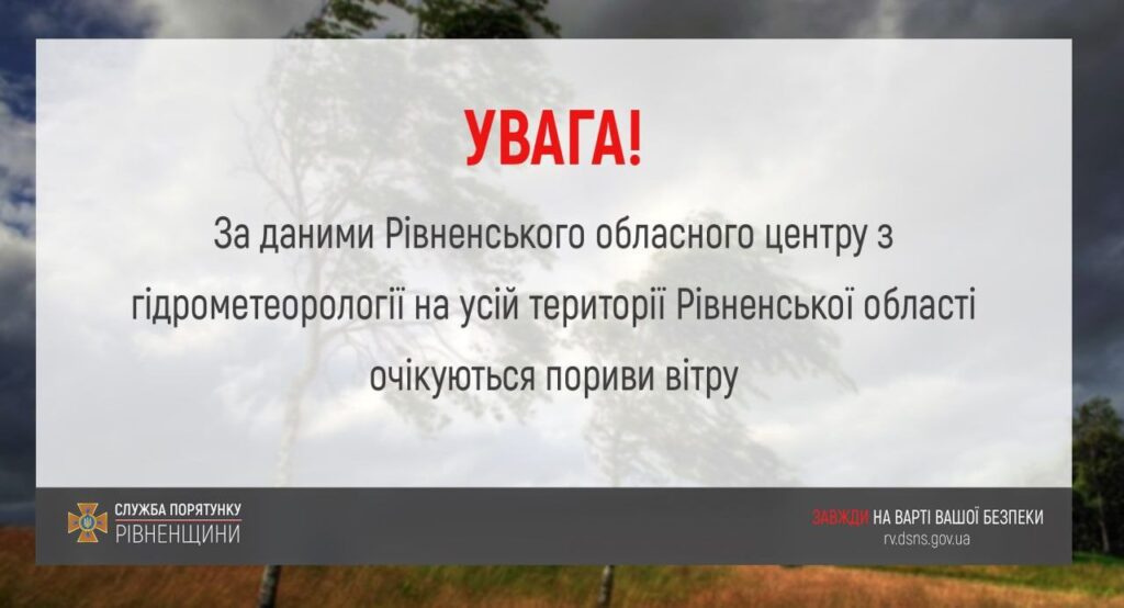 Рятувальники Рівненщини закликають громадян бути обережними. У випадках надзвичайних подій пов’язаних з погодними умовами негайно телефонуйте на цілодобові номери Служби порятунку області “101” або “112”.