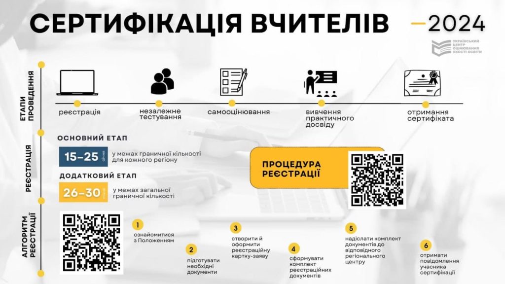 Зареєструватися зможуть тільки педагоги, які мають стаж педагогічної роботи не менше ніж 2 роки та працюють за основним місцем роботи на посаді вчителя відповідного фаху.
